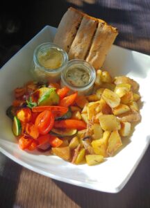 - Es geht auch ohne Fleisch – Du bekommst bei uns auch immer veggi oder vegan auf den Teller. Und wenn es der Sommer und die Neueinrichtung wieder zulässt auch jede Menge Kräuter und Gewürze aus unserem eigenen Hexengarten hinter dem Haus